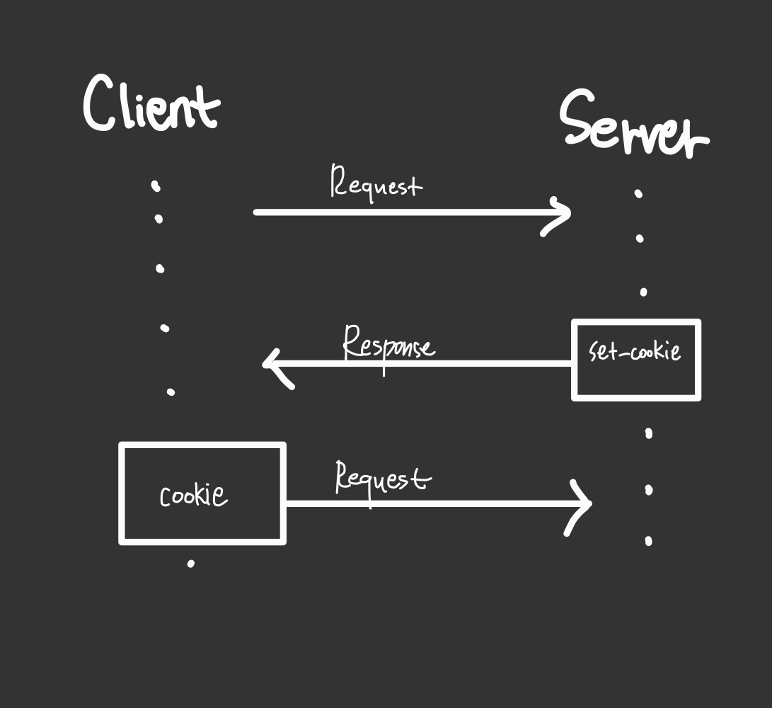 브라우저는 쿠키를 저장해 놓았다가, 동일한 서버에 재 요청 시 쿠키를 함께 전송합니다.
