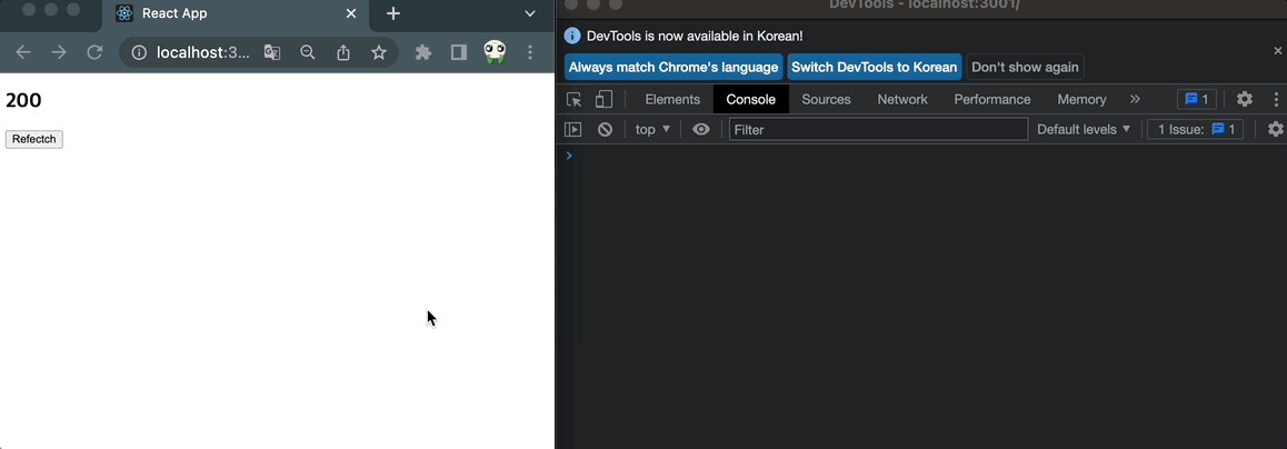 Refetch 버튼을 클릭하면 refetch 함수가 실행됩니다.