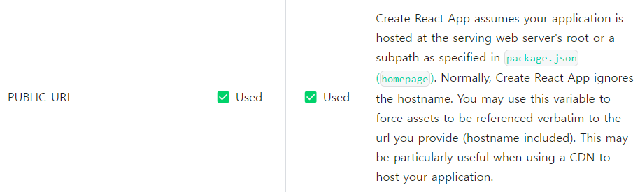 이때 PUBLIC_URL은 package.json의 homepage URL 값으로 설정됩니다.