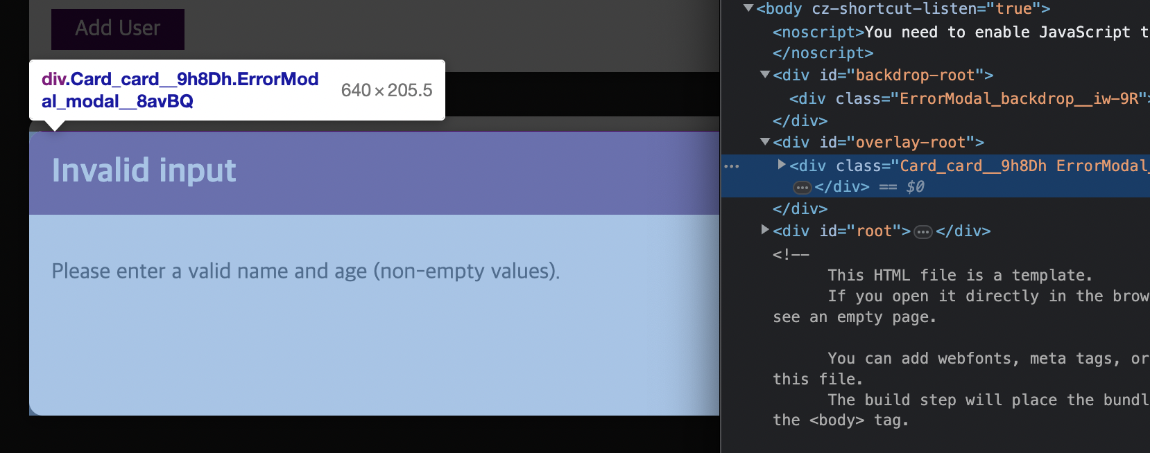 저는 Error모달을 나머지 페이지 위에 띄우기 위해 portal을 사용했습니다.