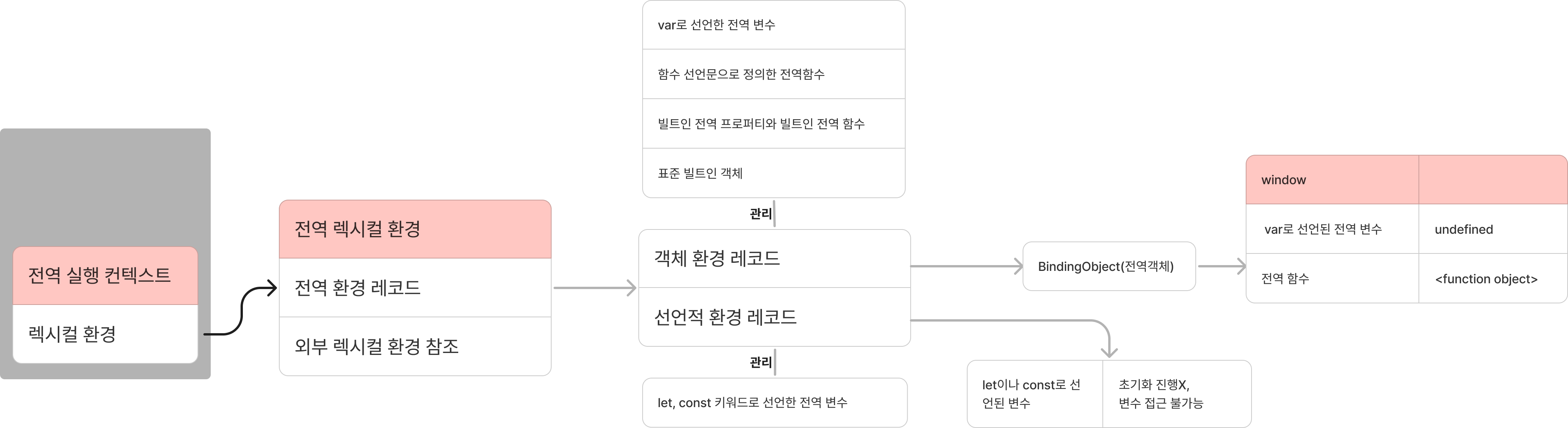 2. 전역 렉시컬 환경 생성 : 생성 후 전역 실행 컨텍스트에 바인딩